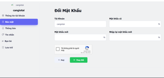 Nếu quên mật khẩu cũ, hãy dùng chức năng tìm lại mật khẩu trước khi đổi.