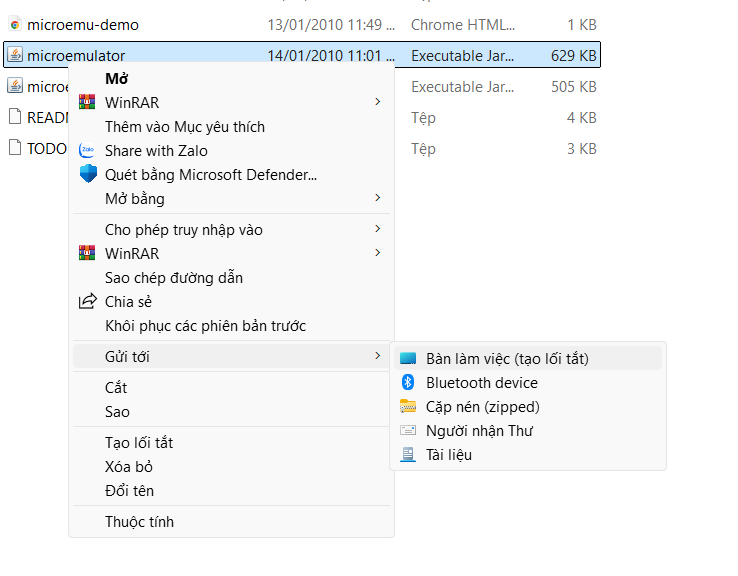Bước 2: Bạn giải nén MicroEmulator ra 1 thư mục và tạo Shorcut (lối tắt) ra Desktop cho dễ nhìn